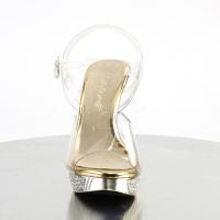 4 1/2 インチ (11.4 cm) ヒール、1"(2.5 cm) プラットフォーム アンクルス トラップ サンダル ラインス トーンを備え装飾ヒールとプラットフォーム(PF Ankle Strap Sandal W/ RS)