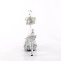 4 1/2"(114mm)ヒール、1"(25mm)プラットフォームサンダルw/ラインストーンアンクルカフをフィーチャーしたラインストーン装飾ヒールとプラットフォーム(PF Sandal w/RS Ankle Cuff)