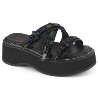 ◆ 3 1/2 ""(89mm)プラットフォムストラップサンダル、アイレット付きクリスクロスストラップ、装飾用バットバックル付き 詳細 ◆