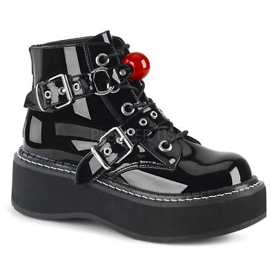 o リング ・赤ギャグ ボール、背中ファスナー付け 2 インチ (51 mm) ダブル バックルを備えたプラットフォーム編み上げ足首ブート ストラップします。(Platform Lace-Up Front Ankle Boot w/ Ball Gag, Back Zip)