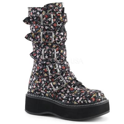 2 インチ (51 mm) プラットフォーム レースアップ フロントふくらはぎ起動全室バックルのストラップ、背面の金属ファスナー(PF Mid-Calf Boot w/ 5 Buckle Straps, Metal Back Zip)