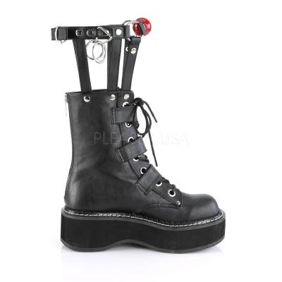 2 インチ (51 mm) ケージの w/プラットフォーム編み上げ座屈足首ブート スタイルのフラット スタッドを備えふくらはぎ高脚ブレース、o リングとギャグ ボールの詳細については、背面の金属ファスナー