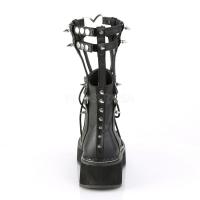 ケージ スタイルふくらはぎ高脚ブレース コーン スパイクの特徴と心ワット/2」プラットフォーム アンクル ブーツ リングの詳細は、ジッパーの内側の金属(PF Ankle Boot W/ Calf High Leg Brace, Inner Metal Zipper)