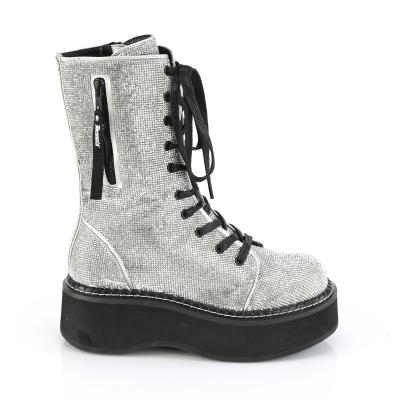 ◆ 2"プラットフォームミッドカーフレースアップブーツは、リネストンカバーアッパー&アウターメタルジッパーポケット、内側の金属ジップクロージャーを備えています ◆