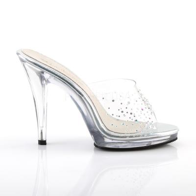 4 1/2 インチ (11.4 cm) ヒール、マルチを搭載する 1/2 インチ (1.3 cm) プラットフォームのスライド サイズ ヴァンプに虹色のラインス トーン(PF Slide W/ AB RS)