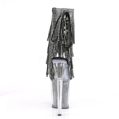 8 インチ (200 mm) かかと、4"(100 mm) プラットフォーム レースアップ バック足首のトランクリッドに 4 層フリンジ ・ クローム メッキ、シミュレート ラインス トーンいっぱいプラットフォーム、ジッパー閉鎖中フル