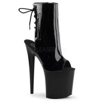 ◆ スチレットヒール 8 インチ (20.3 cm)、4 インチ (10.2 cm) プラットフォームを開くつま先またはかかとのバックレース アップ足首ブート、ジッパー閉鎖中 ◆
