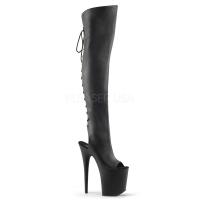 スチレットヒール 8 インチ (20.3 cm)、4 インチ (10.2 cm) プラットフォームを開くつま先またはかかとレースアップ バックの腿の高いブーツ、フルレングス ジッパー閉鎖中