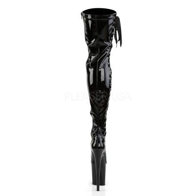 8 インチ (20.3 cm) スチレットヒール、4 インチ (10.2 cm) サイド リボンひも、フルレングス ジッパー閉鎖中でプラットフォーム ストレッチ太もも高ブート(PF Stretch Thigh Boot W/Side Ribbon Lacing, Side)
