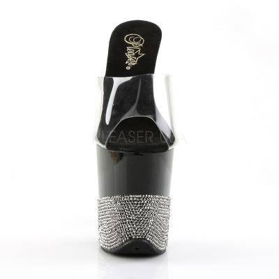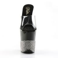 スチレットヒール 8 インチ (20.3 cm)、4 インチ (10.2 cm) プラットフォーム スライド下方のプラットフォームですべて覆われた全室ラインス トーン(PF Slide w/RS Detail on Bottom)