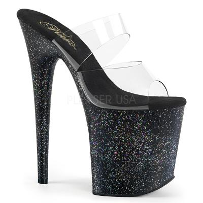 スチレットヒール 8 インチ (20.3 cm)、4 インチ (10.2 cm) プラットフォーム デュアル バンド プラットフォーム全体の全室ミニ虹色キラキラをスライドさせます。(PF Dual Band Slide w/Glitter)