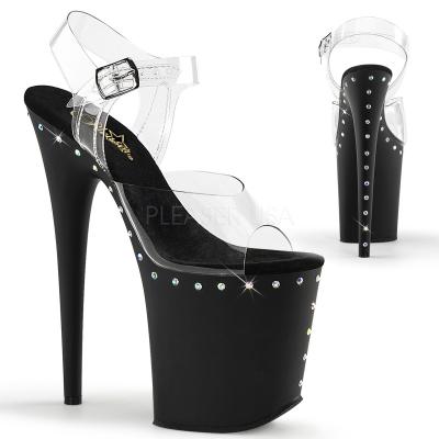 スチレットヒール 8 インチ (20.3 cm)、4 インチ (10.2 cm) プラットフォーム アンクルス トラップ サンダル AB を備え並んでプラットフォームのラインス トーン(PF Ankle Strap Sandal)