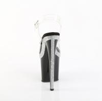 8インチ(100mm)ヒール、4インチ(200mm)プラットフォームアンクルストラップサンダル、プラットフォームのトップエッジとヒールに複数の列のラインストーンが特徴(PF Ankle Strap Sandal w/ RS Lines)