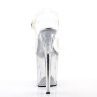 8 インチ (20.3 cm) スチレットヒール、4 インチ (10.2 cm) プラットフォーム アンクルス トラップ サンダル全体上部・ プラットフォームのミニ虹色のきらめきを搭載(PF Ankle Strap Sandal w/Glitter)