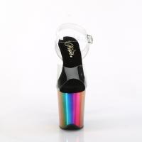 8""(200mm)ヒール、4"(100mm)プラットフォームアンクルストラップサンダルレインボークロムメッキプラットフォームボトム