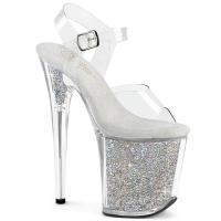 8インチ(200mm)ヒール、4インチ(100mm)プラットフォームにABラインストーンが挿入されたプラットフォームとヒールを備えたプラットフォト(PF Ankle Strap Sandal w/RS Inserts)