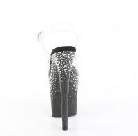 8インチ(100mm)ヒール、4インチ(200mm)プラットフォームアンクルストラップサンダル。プラットフォーム底の上半分にスプリンクルラインストーンのデザインが施されています。(PF Ankle Strap Sandal w/ Sprinkle RS)
