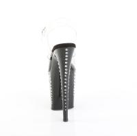 8インチ(100mm)ヒール、4インチ(200mm)プラットフォームアンクルストラップサンダル、プラットフォームボトムとヒールの外側にラインストーンティアドロップデザインが特徴(PF Ankle Strap Sandal w/ RS)