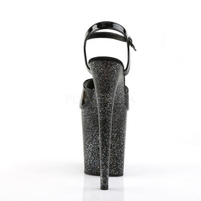 8 インチ (20.3 cm) スチレットヒール、4 インチ (10.2 cm) プラットフォーム アンクルス トラップ サンダル プラットフォーム全体のミニの虹色のきらめきを搭載(PF Ankle Strap Sandal w/Mini Glitter)