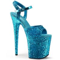 8 インチ (20.3 cm) のスチレットヒール、4 インチ (10.2 cm) プラットフォーム キラキラ アンクルス トラップ サンダル、アクアの輝き