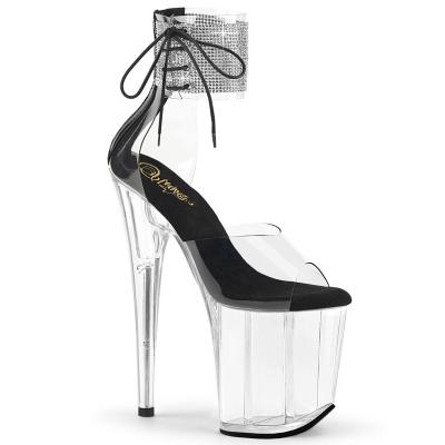 8 ""(200mm)ヒール、4 ""(100mm)プラットフォームクローズバックラインストーン装飾足首カフサンダルw /サイドレース、バックジップ閉鎖(PF Rhinestoned Ankle Cuff Sandal, Back Zip)