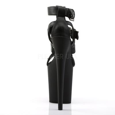 スチレットヒール 8 インチ (20.3 cm)、4 インチ (10.2 cm) ストラップ付き T ストラップを閉じたプラットフォーム バック サンダル金属リングし、スタッドの詳細(Heel, 4"PF Strappy Sandal w/Rings and Studs Detail)
