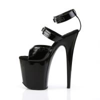 ◆ プラットフォームの外側に装飾品のストラップ スチレットヒール 8 インチ (20.3 cm)、4 インチ (10.2 cm) プラットフォーム ダブル座屈アンクルス トラップ サンダル特徴座屈 ◆