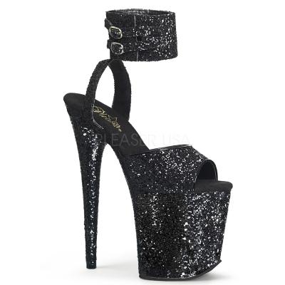 8 インチ (203 mm) かかと、4 インチ (102 mm) プラットフォーム キラキラ アンクルス トラップ サンダル デュアル w/広い足首バンドを備えバックルのストラップ(PF Glitter Ankle Strap Sandal)