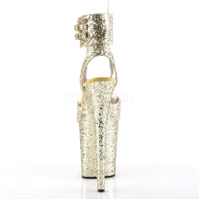8 インチ (203 mm) かかと、4 インチ (102 mm) プラットフォーム キラキラ アンクルス トラップ サンダル デュアル w/広い足首バンドを備えバックルのストラップ(PF Glitter Ankle Strap Sandal)