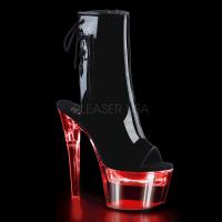◆ 7 インチ (178 mm) かかと、2 3/4 インチ (70 mm) プラットフォーム USB 有料 LED ライトアップ オープンつま先かかとの複数の静的/変更のカラー オプション ・光の設定の w/レースアップ バック足首ブート/ ◆