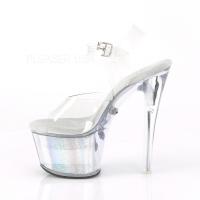プラットフォーム下に 7 インチ (178 mm) かかと、2 3/4 インチ (70 mm) プラットフォーム USB 有料 LED ライトアップ アンクルス トラップ サンダル w/複数の静的/変更のカラー オプション ・ ライト設定とハッチング ホログラムを挿入します