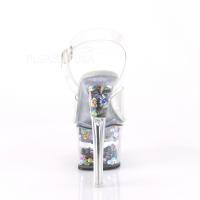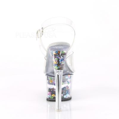 7 インチ (178 mm) かかと、2 3/4 インチ (70 mm) プラットフォーム USB 有料 LED ライトアップ アンクルス トラップ サンダル w/複数の静的/変更のカラー オプション ・光の設定とプラットフォーム底の反射マルチ カラー カップ スパンコール