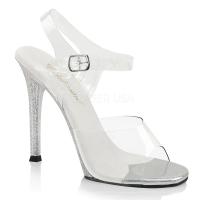 4 1/2 インチ (11.4 cm) ヒール アンクルス トラップ サンダル全体の底上ミニ虹色のきらめきを搭載(Heel Ankle Strap Sandal w/ Mini Glitters/Silv)