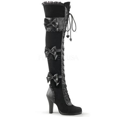 3 3/4"(9.5 cm) ヒール、1/2 インチ (1.3 cm) プラットフォーム ゴス ・ ロリータ レースアップ フロント - 膝のブーツほたてとストラップを備え・弓の詳細は、1/3 内側ジッパー