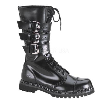 ないジッパー(Heel,14 Eyelets Blk Leather 3 Strap S/T Mid Calf BT)