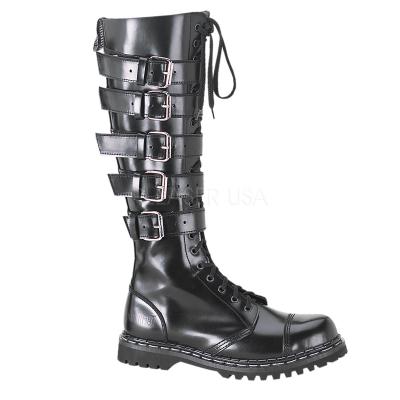 ないジッパー(Heel, 20 Eyelet Blk Leather 5 Strap S/T Knee Boot)