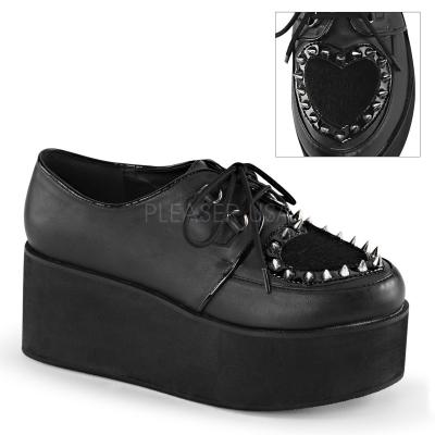 詳細を配管は先の尖ったスタッド、D リング レース怒り心カットアウト デザインを特色に 2 3/4 インチ (7 cm) のプラットフォーム(PF w/Heart Cutout, D-Ring Lace & Spikes Detail)