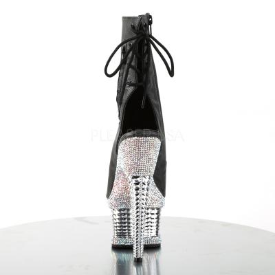 6 1/2 インチ (16.5 cm) ヒール、2 1/2 インチ (6.4 cm) クローム メッキのプラットフォームと隠しジップ ポケットやジッパー閉鎖中のテクスチャのプラットフォームで装飾された Slv マルチ ラインス トーンつま先またはかかとバックレース アップ ブーツを開く