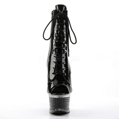 6 1/2 インチ (16.5 cm) ヒール、2 1/2 インチ (6.4 cm) テクスチャ プラットフォームのぞき見つま先のフロント編み上げ足首ブート、ジッパー閉鎖中(PF Peep Toe Lace-Up Ankle Boot, Side Zip)