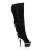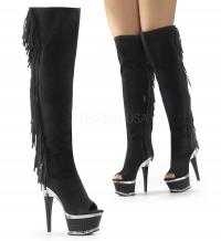 6 1/2 インチ (16.5 cm) ヒール、2 1/2 インチ (6.4 cm) テクスチャ プラットフォームのぞき見つま先ジッパー閉鎖中の後ろにフリンジ付きの腿の高いブーツ(PF Peep Toe Thigh High Boot, Side Zip)
