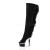 6 1/2 インチ (16.5 cm) ヒール、2 1/2 インチ (6.4 cm) テクスチャ プラットフォームのぞき見つま先ジッパー閉鎖中の後ろにフリンジ付きの腿の高いブーツ