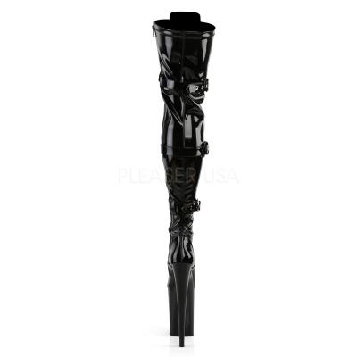 ◆ 9」(22.9 cm) ヒール、5 1/4"(13.3 cm) プラットフォーム ストレッチ レースアップ フロント腿の高いブーツ トリプルでひん曲がったストラップ全長ジッパー閉鎖中 ◆