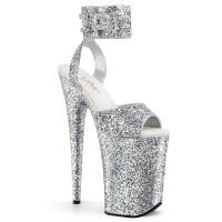 9 インチ (229 mm) かかと、デュアル w/広い足首バンドをフィーチャー 5 1/4"(133mm) 厚底サンダル バックルのストラップと光る w/対象プラットフォーム全体下(PF Sandal)