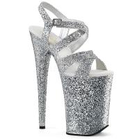 ヒール 9 インチ (229 mm)、5 の 1/4"(133mm) プラットフォーム二重十字アンクルス トラップ サンダル プラットフォーム全体の下部を備え光る w/カバー(PF Criss-Cross Ankle Strap Sandal)