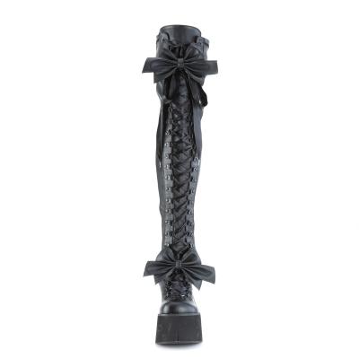 (Wedge PF Lace-Up Stretch Thigh Boot, Side Zip)