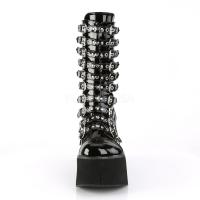 4 1/2 インチ (114 mm) プラットフォーム ストラップふくらはぎブート搭載デュアル バックル各ストラップ、ラウンド ・ ストラップ、背面の金属ファスナーにハート スタッドの詳細に(PF Strappy Mid-Calf Boot, Metal Back Zip)