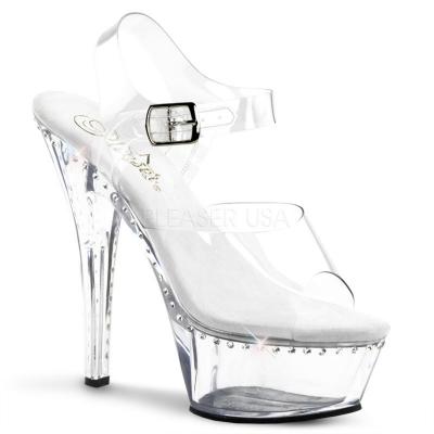 6 インチ (15.2 cm) ヒール、1 3/4 インチ (4.5 cm) プラットフォーム足首ストラップのぞき見つま先サンダル特長 1 ライン ラインス トーン プラットフォームとヒールに(PF Ankle Strap Sandal)