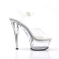 6 インチ (15.2 cm) ヒール、1 3/4 インチ (4.5 cm) プラットフォーム足首ストラップのぞき見つま先サンダル特長 1 ライン ラインス トーン プラットフォームとヒールに(PF Ankle Strap Sandal)