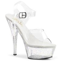 6 インチ (15.2 cm) ヒール、1 3/4 インチ (4.5 cm) プラットフォーム アンクルス トラップのぞき見つま先サンダル プラットフォーム全体のミニの虹色のきらめきを搭載(PF Ankle Strap Sandal w/Mini Glitter)