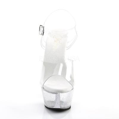6 インチ (15.2 cm) ヒール、1 3/4 インチ (4.5 cm) プラットフォーム アンクルス トラップのぞき見つま先サンダル プラットフォーム全体のミニの虹色のきらめきを搭載(PF Ankle Strap Sandal w/Mini Glitter)